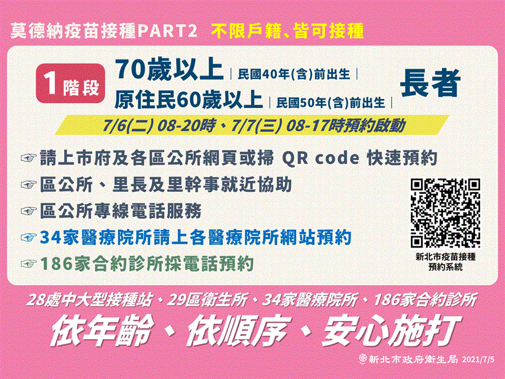莫德納疫苗開打 新北72歲以上長者預約率超過6成5 | 中華日報|中華新聞雲
